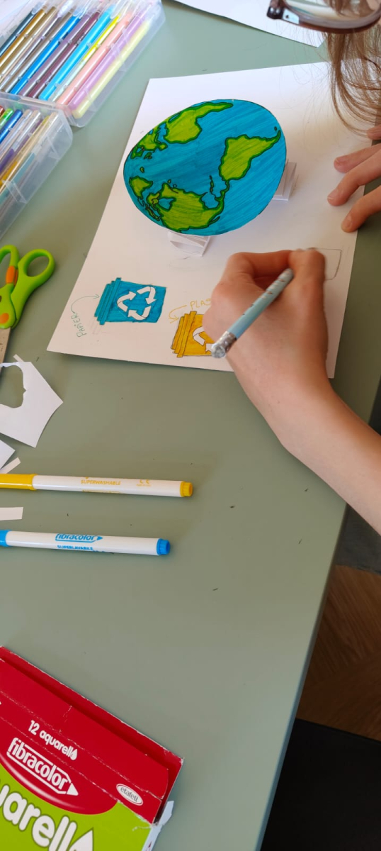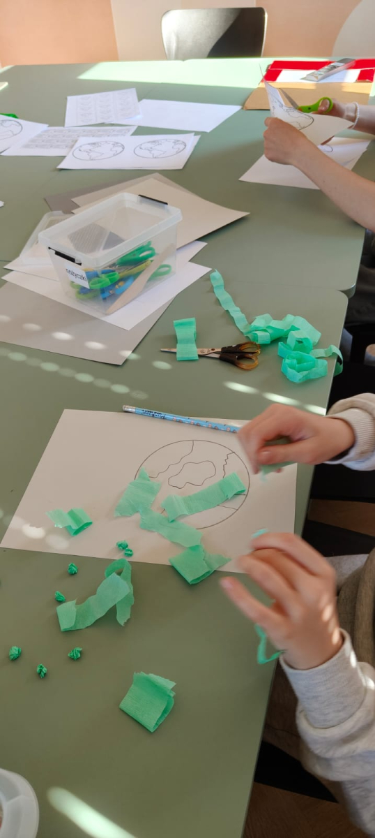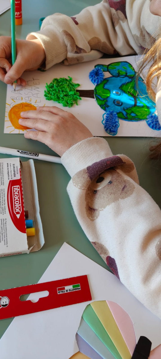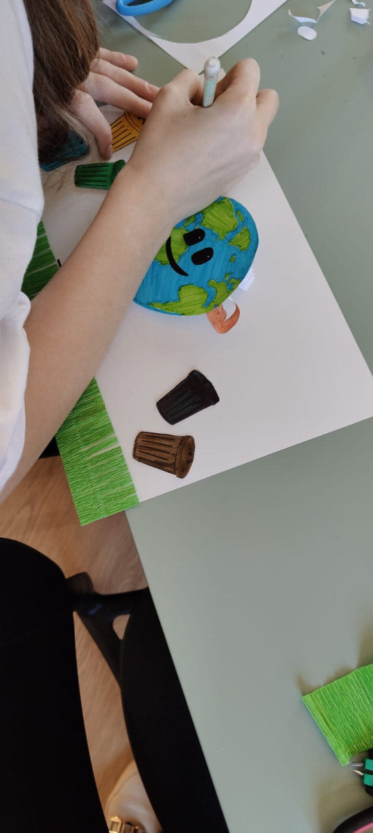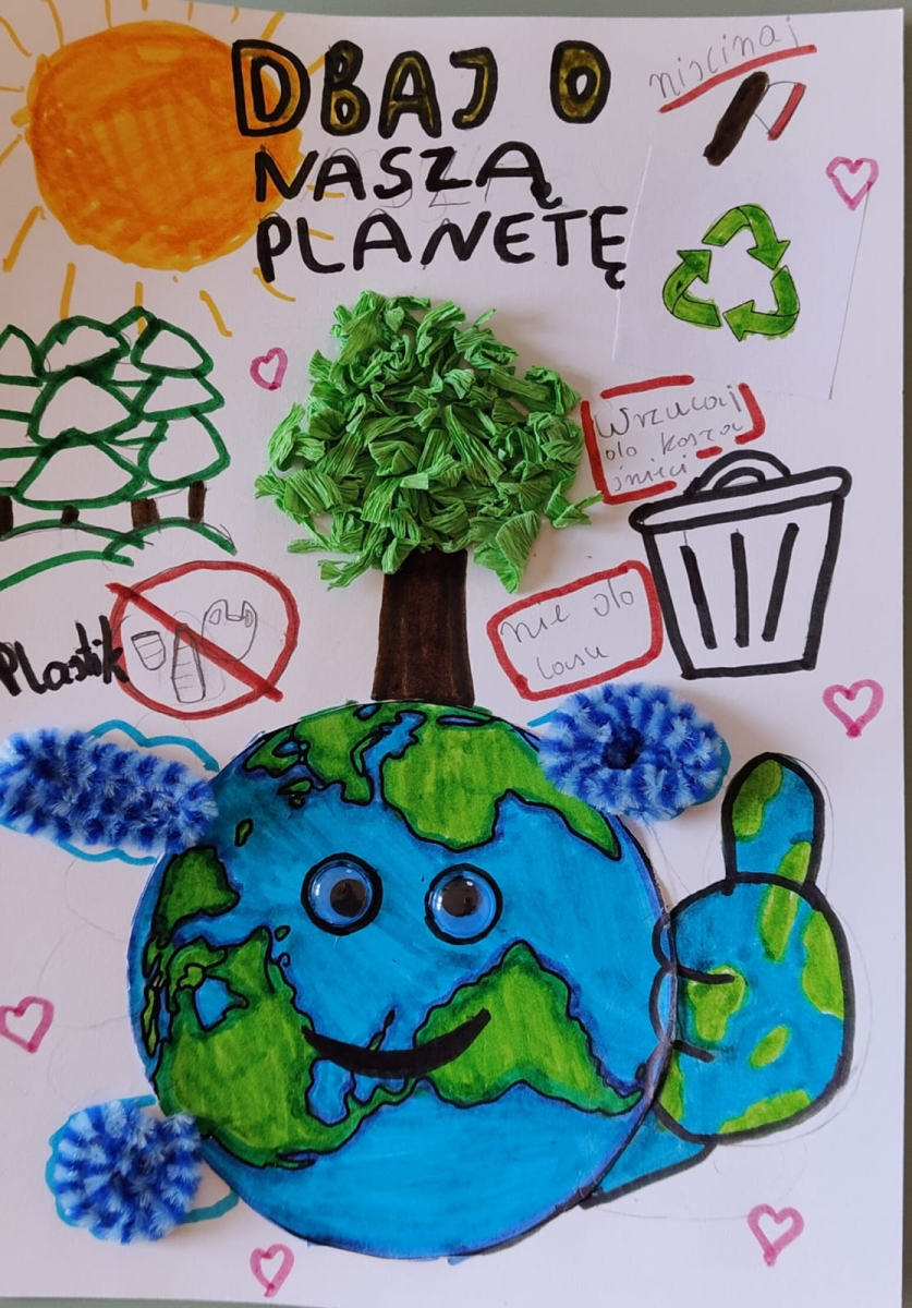 Podczas naszych zajęć bibliotecznych rozmawialiśmy o tym, jak dbać o planetę każdego dnia. Było twórczo, kolorowo i bardzo ekologicznie! Powstały wyjątkowe prace pełne drzew, uśmiechniętej Ziemi, symboli recyklingu i ważnych haseł przypominających, że przyszłość naszej planety jest w naszych rękach.