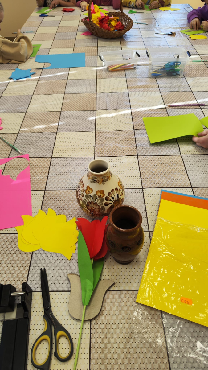 Kolejny dzień warsztatów twórczych w naszej bibliotece upłynął w słonecznej i radosnej atmosferze. Dzieci z zapałem tworzyły papierowe tulipany - kolorowe, starannie wycinane i składane.