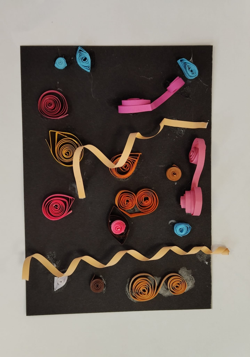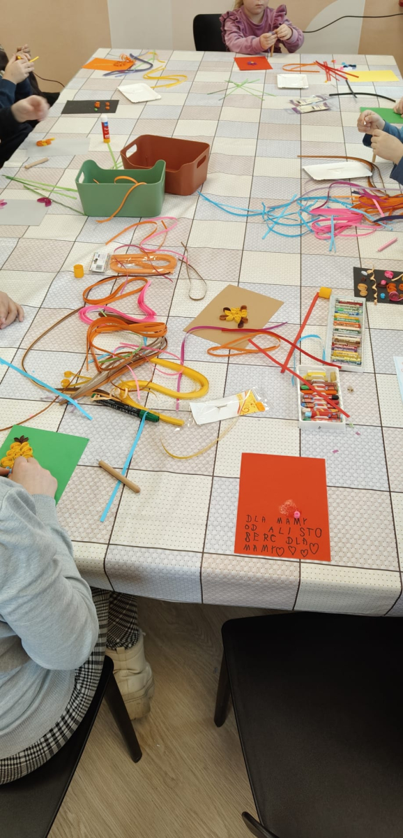 Wczoraj - kolejnym dniu spotkania z techniką quillingu, do wspólnej pracy dołączyło znacznie więcej dzieci, co tylko potwierdziło, jak dużym zainteresowaniem cieszyła się ta forma twórczej aktywności. Uczestnicy kontynuowali rozpoczęte wcześniej prace, oraz tworzyli nowe z zaangażowaniem dopracowując detale swoich projektów.
