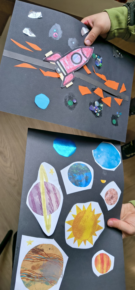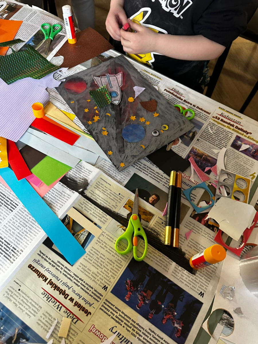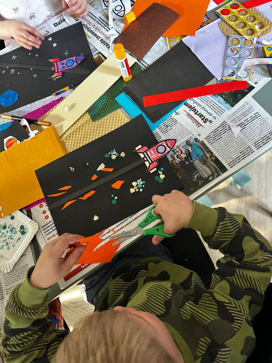 14 kwietnia to Dzień Patrzenia się w Niebo. Z tej okazji - na podróż po planetach - zaprosiliśmy dzieciaki do naszej biblioteki w Halinowie. Czy wiemy jaka jest odległość między Słońcem a Ziemią? W jakim czasie przejechałby ją samochód BMW, a w jakim czasie pokonuje ją promień słoneczny? Czy da się zamieszkać na innej planecie niż Ziemia? Ile księżyców ma Saturn? Czym jest wielka czerwona plama na Jowiszu? Dlaczego Wenus śmierdzi zgniłymi jajami? Na te i wiele innych pytań odpowiadaliśmy m.in. z pomocą książki „Planety” (John Devolle, wyd. Zysk i S-ka). Nie mogło również zabraknąć piosenki „W Układzie Słonecznym”, a na zakończenie każdy stworzył swoją fantastyczną przestrzeń kosmiczną.