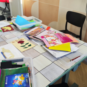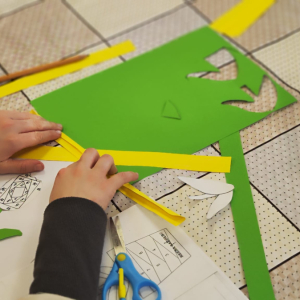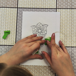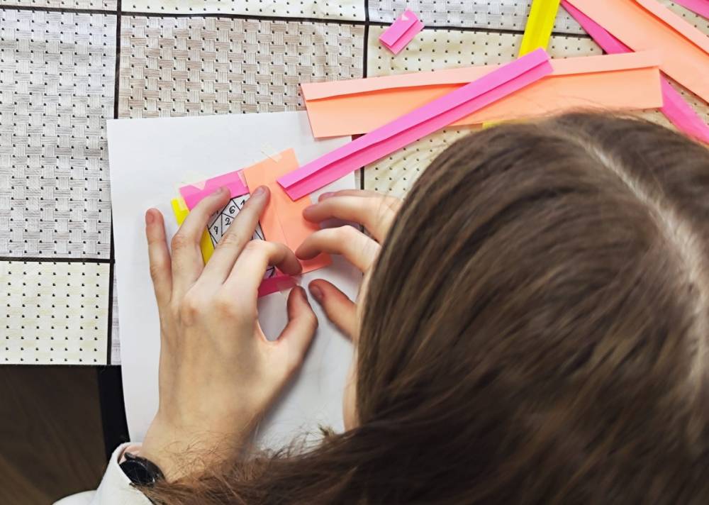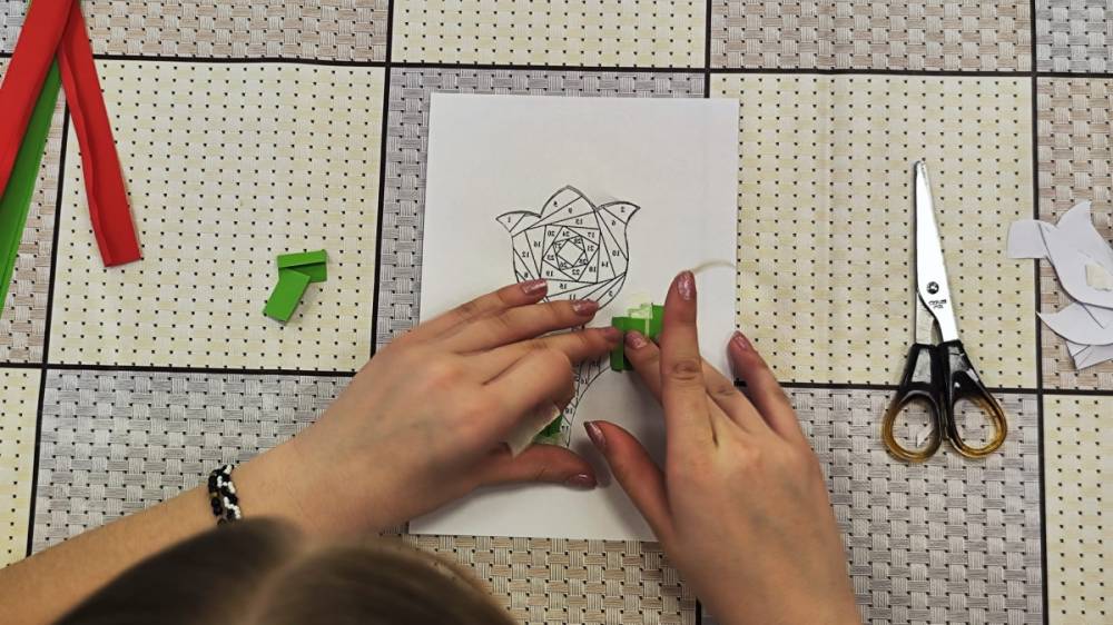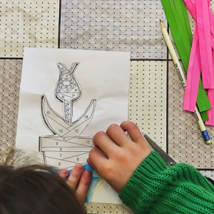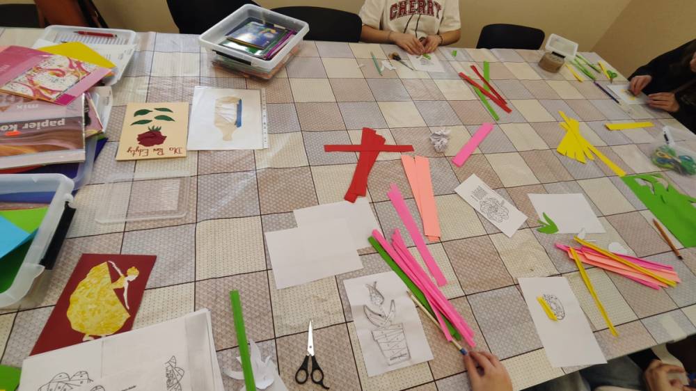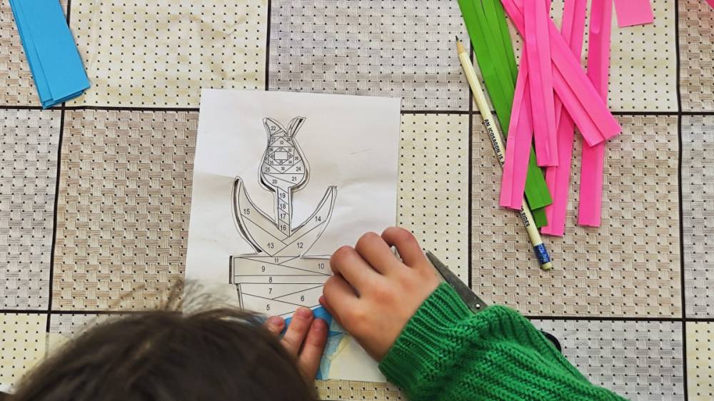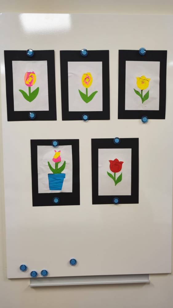 Podczas zajęć plastycznych uczestnicy stworzyli piękne kolorowe kwiaty wykonane techniką Iris Folding. Z kawałków barwnego papieru powstały niezwykłe tulipany i róże, które wprowadziły do biblioteki prawdziwie wiosenny nastrój.