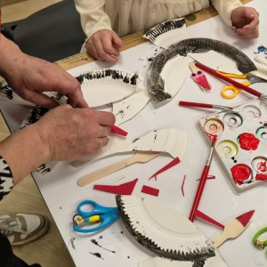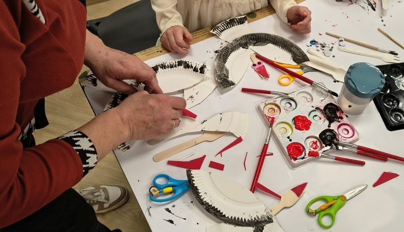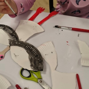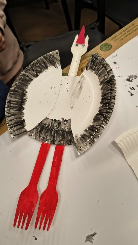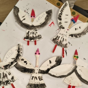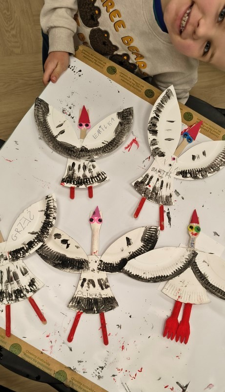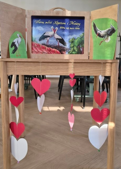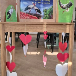 Porozmawialiśmy chwilę o miłości, że trzeba ją okazywać choćby drobnymi gestami każdego dnia, nie tylko w Walentynki. Na koniec nasza warsztatowa sala zamieniła się w mazurską wieś Żywkowo, gdzie co roku na gniazdowanie przylatuje 100 bocianów.
